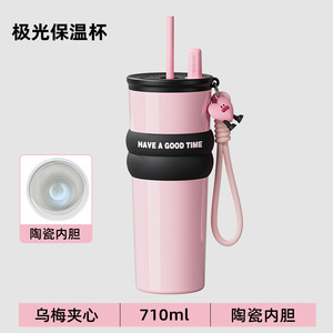 新しい女の子のかわいいウォーターカップ、大容量、見栄えの良い316ステンレス鋼セラミックライナーカーストローコーヒーカップ