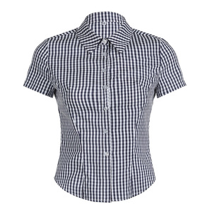シンプルbm学院風襟チェック柄衝突色ギャルシャツアメリカレトロカジュアルウエスト痩せ上着