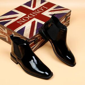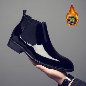 切尔西靴男亮面真皮英伦皮靴小方头短靴高帮商务皮鞋漆皮男士靴