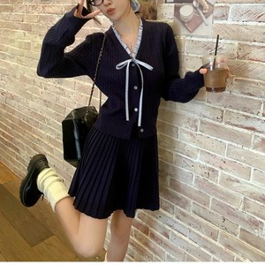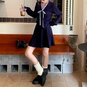 韓系学院風スーツの女性の木の耳元はニットのカーディガンの上着の春の百のスカートの半身のスカートの2つのセットをつなぎ合わせます。