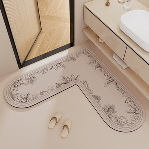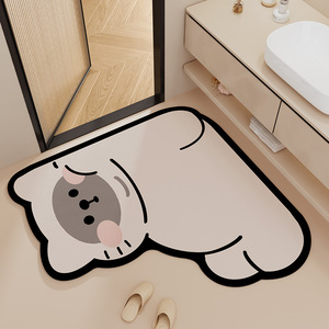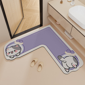 漫画のバスルームフロアマット、ソフトクッション、汚れにくくお手入れが簡単、吸収性フロアマット、家庭用バスルームドアL字型滑り止めマット