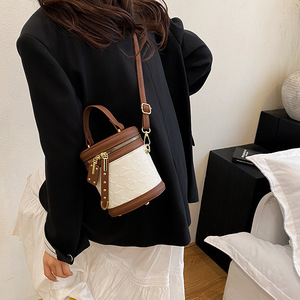 时尚百搭迷你小包女2025春季新款时尚斜挎包质感菱格手提水桶包.