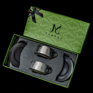 電着ブラックローズ カップ2個、ソーサー2個(グリーンギフトボックス)