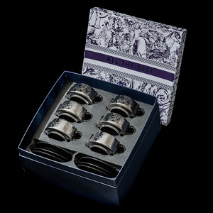 電着ブラックローズ 6カップ6ソーサー(ブルーギフトボックス)