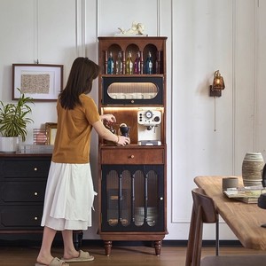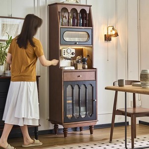フランス無垢材サイドボード家庭用小型狭いサイド収納ハイキャビネットリビングルームレトロオールインワン壁ディスプレイキャビネット