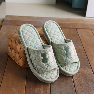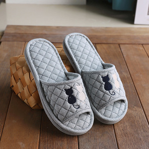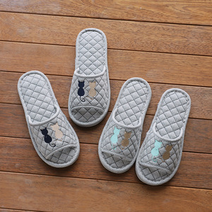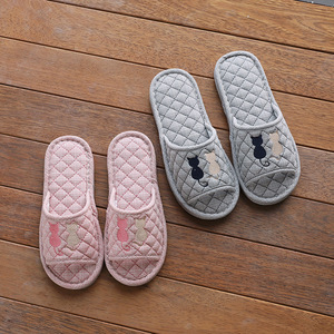 新作綿布厚手男女兼用カップル猫漫画柄ホーム静音布底室内フロアスリッパ