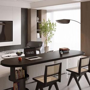 イタリア製黒横ホールソファ背もたれ無垢材デスクバルコニーベッドルームダブル学習コンピュータデスクワークベンチロングテーブル