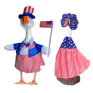 7月4日ポーチグースデコレーション、アメリカ国旗グースデコレーション独立記念日グースデコレーション23インチ屋外庭芝生装飾