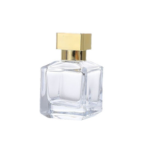 50ml*キューブ透明香水瓶+ノズル+ゴールドスクエアキャップ*ガラス