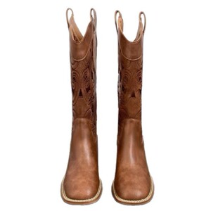 透かし彫り西部カウボーイブーツ女性2025夏復古刺繍長筒サンダル民族風大コードクロスボーダー騎士靴