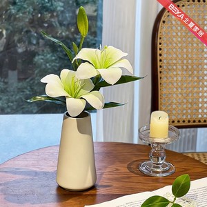 保湿感ユリ造花セラミック花瓶リビングルームの装飾ダイニングテーブルルームの装飾デスクトップ造花装飾品