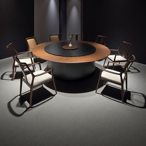 新しい中国風ホテルラウンドテーブル電動スレートダイニングテーブルターンテーブル大型ラウンドテーブルと椅子16人用ホテルボックスクラブラウンドテーブル