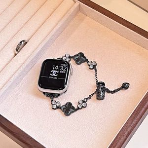 爆闪镶钻四叶草适用苹果appleiwatchS10手表带s8轻奢s9金属高级女