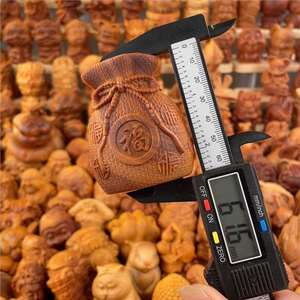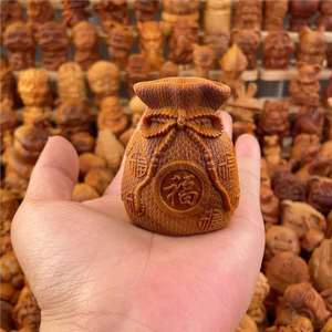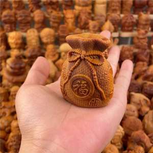 天然モミ無垢材彫刻、富と祝福の袋、米袋、金袋、文具、ハンドピース、卓上装飾品、工芸品