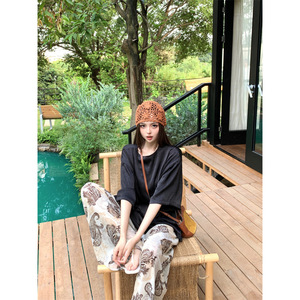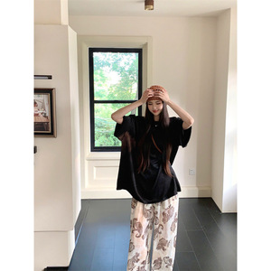 24時間在庫あり、女性用のレイジーでリラックスしたサマーティー+レトロなプリントデザインの快適で通気性のあるパンツ