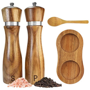 手動ペッパーグラインダー アカシア木製スチールリングペッパーミルクロスボーダー花椒海塩調味料ボトル木製調味料瓶