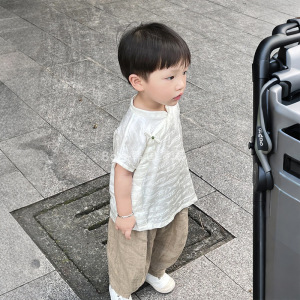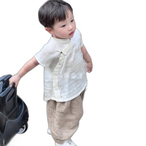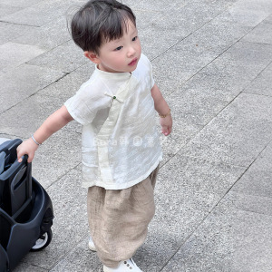 男の子韓服子供夏服 2025 新しい新しい中国風の目を引くアウターシャツ男の子中国風ツーピースセット