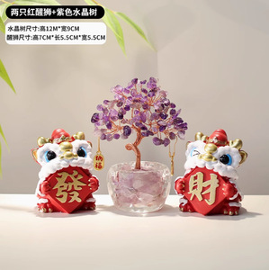 Guochao フォーチュン ライオン ホーム オフィス デスク装飾 フォーチュン ツリー オーナメント 漫画人形 ギフト お土産 ダンシング ライオン ドラゴン