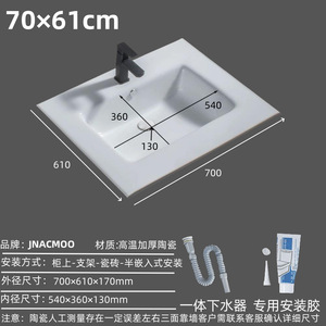 70×60 シングル洗面器切断モデル - 排水アクセサリと取り付け接着剤が付属