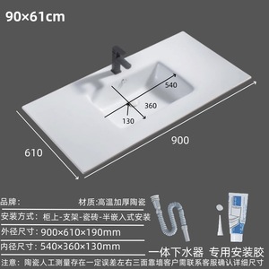 90×60シングル洗面器カッティングモデル - 排水アクセサリーと取り付け接着剤が付属