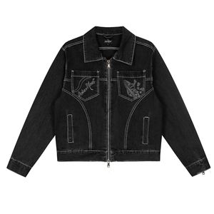 2025国境を越えたファッションブランドのアメリカ刺繍アルファベットプリントジッパーのカジュアルなゆるい男女の卸売り