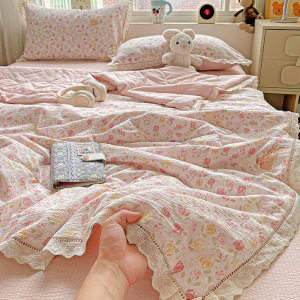 【4点セット】サマーキルト180x200cm + ベッドシーツ245x245cm + 枕カバー1組