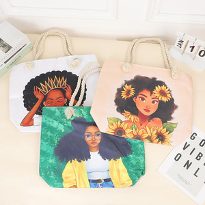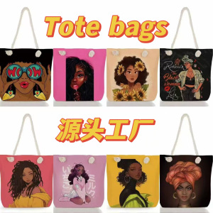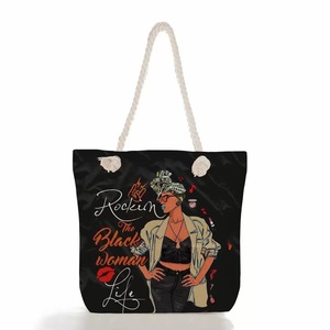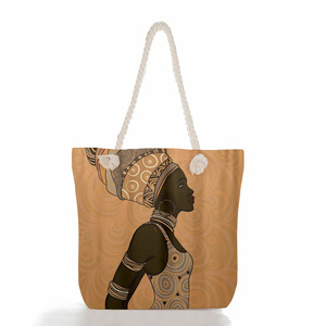 2025ファッション新商品の黒人プリントの綿の縄の組み合わせの女性のカバンのアイデアの太い縄の特のカバンは手を持って小包を持ちます。