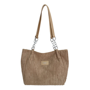 大容量コーデュロイチェーン脇バッグトートバッグレディースバッグ2025秋新作トレンドショルダー通勤バッグ