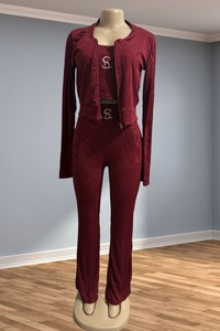 2025年スポーツカジュアルスーツ、タイトフィット、ウエストシェイプ、無地長袖トップス、ベスト、ロングパンツの3点セット、女性用、おしゃれで多用途