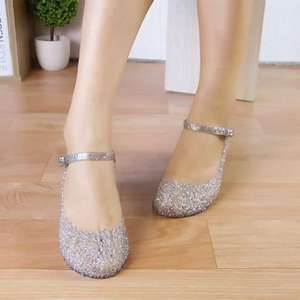2025 新しいクリスタルサンダルウェッジヒールの女性の靴プラスチック靴クリスタルハイヒールの女性のスクエアダンスシューズ包頭下駄