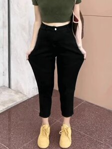 春と秋のプラスサイズファットmmカバー股痩身ブラック2025 9点ダッドジーンズレディースキャロットパンツストレッチハーレムパンツ