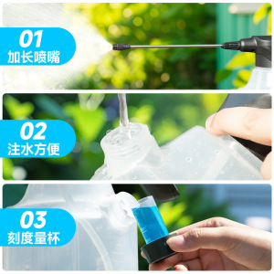 計量カップとスケール付き家庭園芸電気じょうろスプレージャー大容量手持ちじょうろスプレー花の水やり用