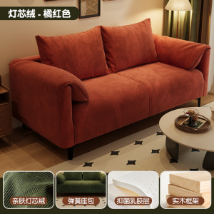 ライトラグジュアリーリビングルーム小さなアパート寝室アパート賃貸住宅衣料品店レセプション休憩エリア2人または3人用ファブリック小さなソファ