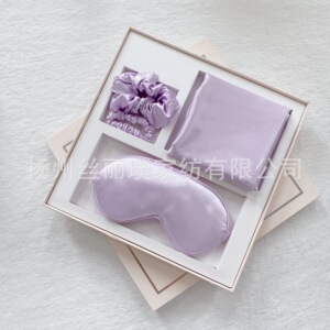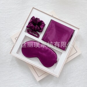 ダークパープルギフトボックス4点セット(コロンアイマスク+枕カバー+ヘアゴム+細ヘアゴム)