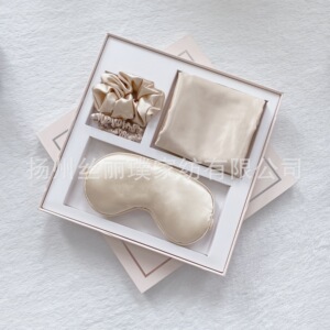シャンパンカラーギフトボックス4点セット(コロンアイマスク+枕カバー+ヘアゴム+細ヘアゴム)