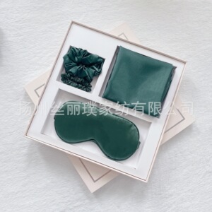 ダークグリーンギフトボックス4点セット(コロンアイマスク+枕カバー+ヘアゴム+細ヘアゴム)