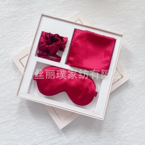 中国の赤いギフトボックス4点セット(大腸アイマスク+枕カバー+ヘアゴム+細いヘアゴム)