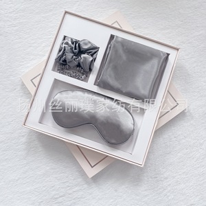 ダークグレーのギフトボックス4点セット(コロンアイマスク+枕カバー+ヘアゴム+細ヘアゴム)