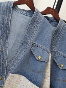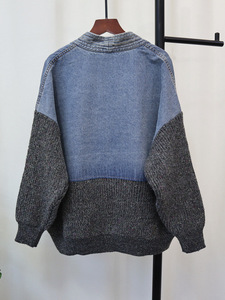 ヨーロッパステーションデニムスプライシングデザインニットカーディガン2025秋と冬の新しい韓国スタイルルーズセータージャケット女性のための
