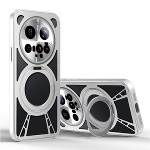 夏の放熱に適した Xiaomi 15 ウルトラメタル中空磁気電話ケース Xiaomi 15 回転スタンド落下防止