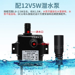 ソーラーポンプ12V循環魚池ろ過増酸素水槽築山流水揚水水中ポンプ屋外小型