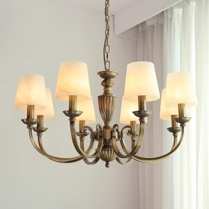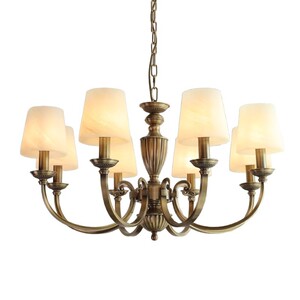 タイプA 8頭ベージュガラスカバーブロンズシャンデリア 幅85 高さ45cm