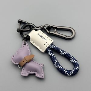 漫画かわいいフレンチブルドッグ子犬キーホルダーペンダント車のキーチェーンリング革手織りロープバッグペンダント