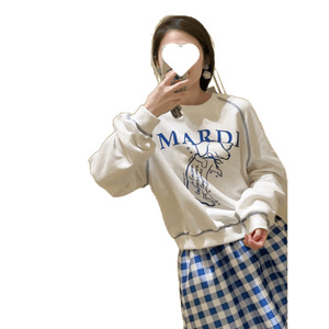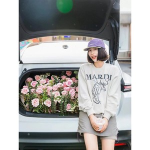 韓国のトレンディなブランドスウェットシャツ女性のためのデイジー新しいプリント刺繍ラウンドネックトップ春薄いスウェットシャツ
