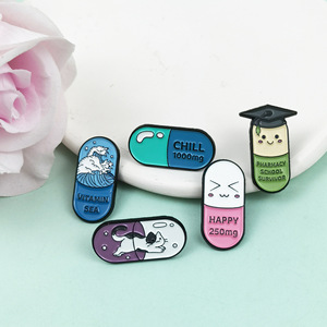 クリエイティブ漫画カプセル形状ブローチ英語アルファベット装飾襟ピンバッジニッチバックパックアクセサリーピンバックル
