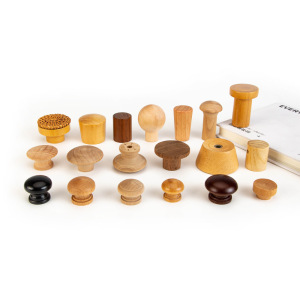 無垢材単穴木製ハンドルワードローブドアキャビネット引き出し表面実装ラウンドソリッドブラックウォールナット木目ハンドル