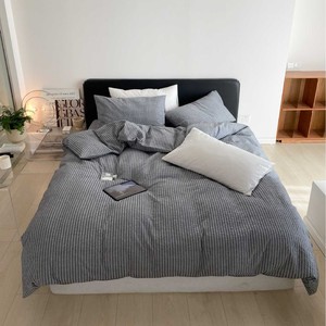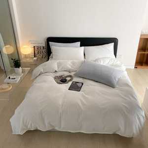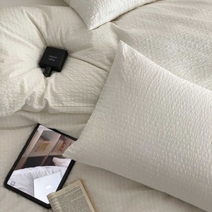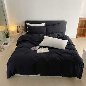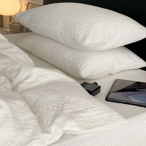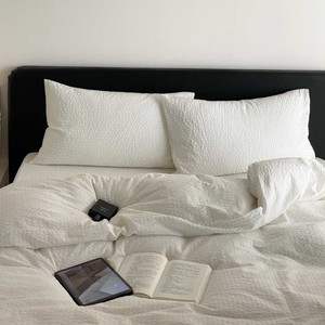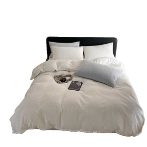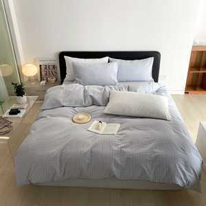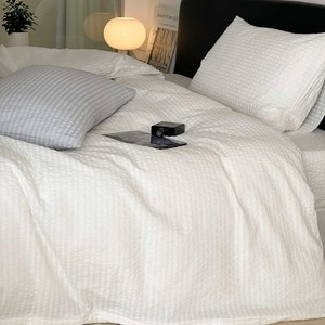 軽くて高級な綿シアサッカー4点セット、シンプルな無地のシングルベッドシーツと掛け布団カバー、通気性の良い裸寝用オールシーズン寝具