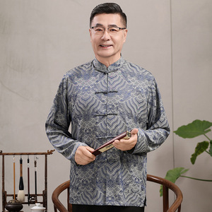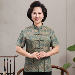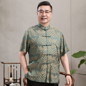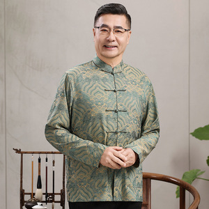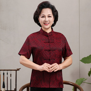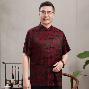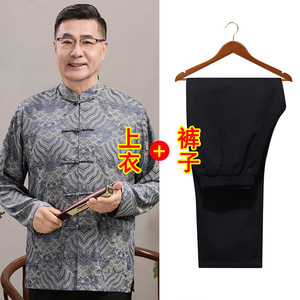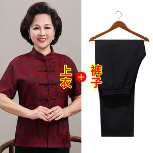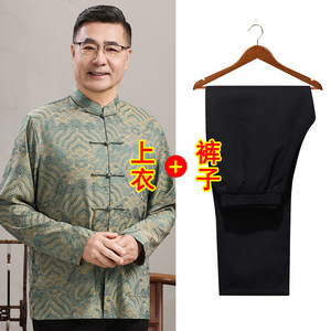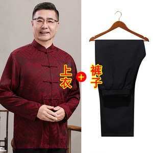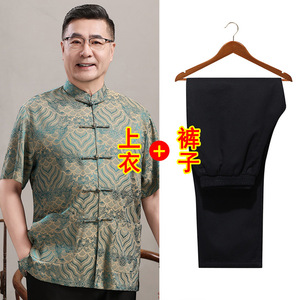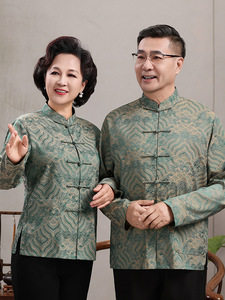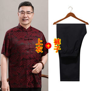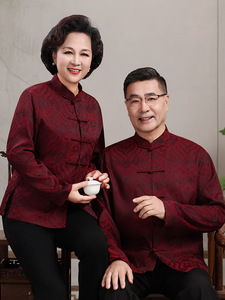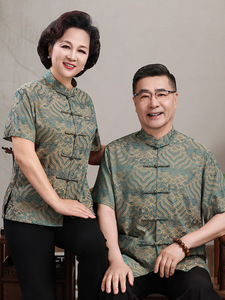 中高年親向けシルク唐服、カップル着用、高齢者誕生日、お父さん結婚式宴会ドレス、祖父母夏スーツ