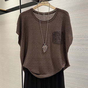 新しいスタイルのリネンアイスシルクセーター半袖シャツ女性のための 2025 夏大きいサイズルーズ痩身トップトレンディ