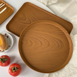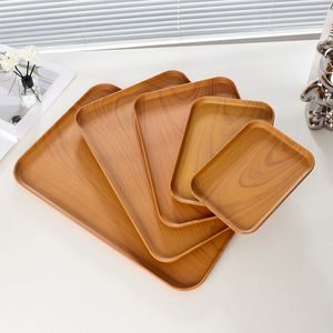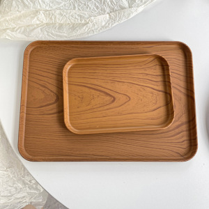 クロスボーダープラスチックトレイ長方形家庭用模造木目リビングルームティートレイレストラン幼稚園ホテルのティーカップ用トレイ